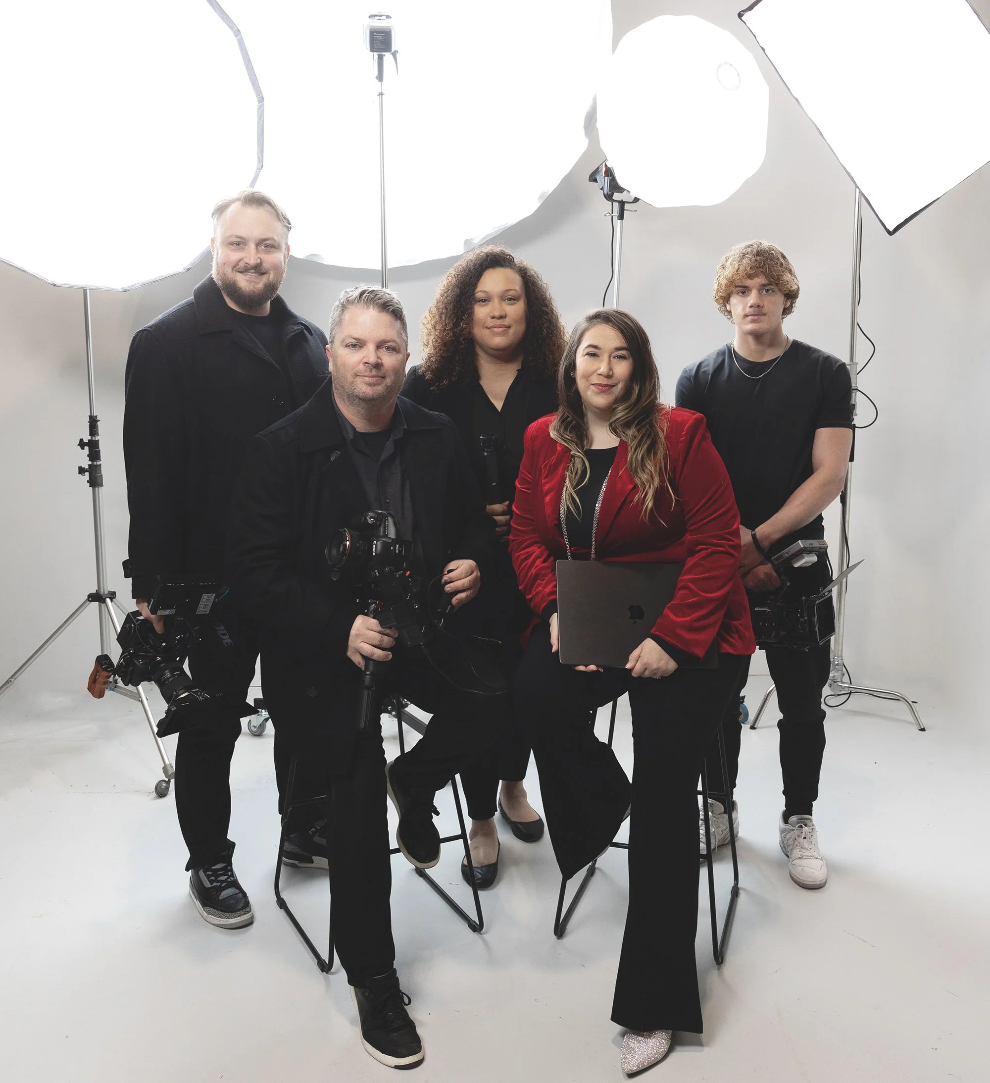 Production: studio lighting, props, touchup for hair and makeup to remove shine, equipment for capture